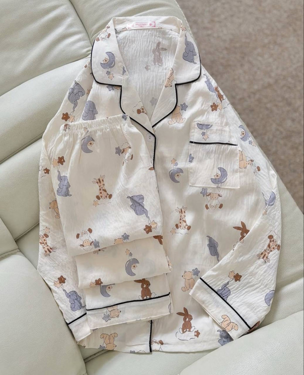 ست بلوزاستین بلندباشلوار نخ موسلین وارداتی