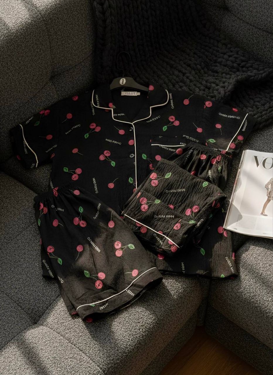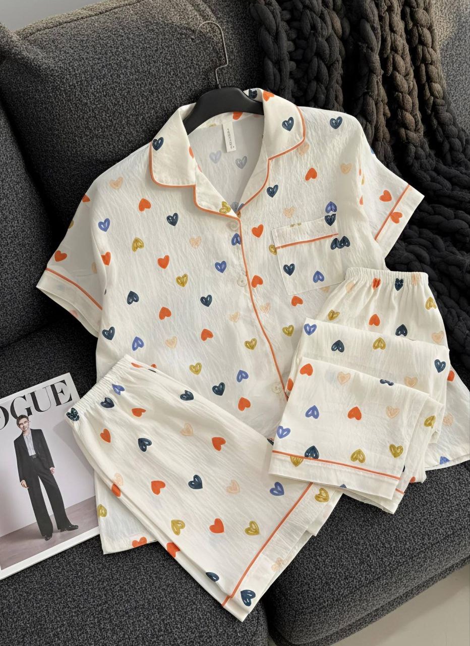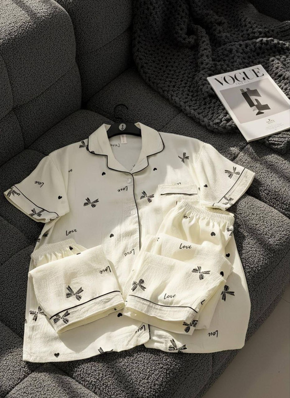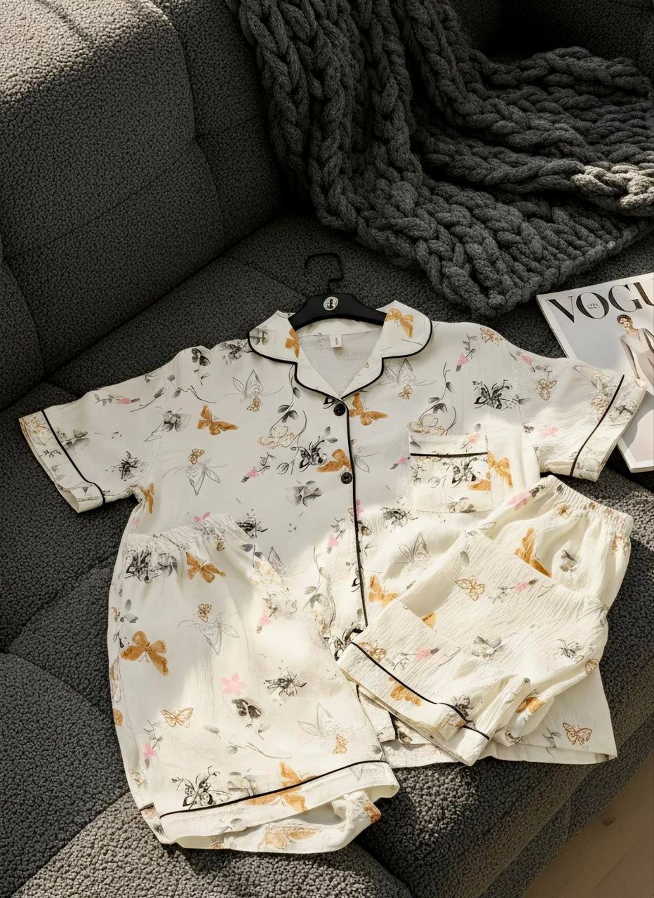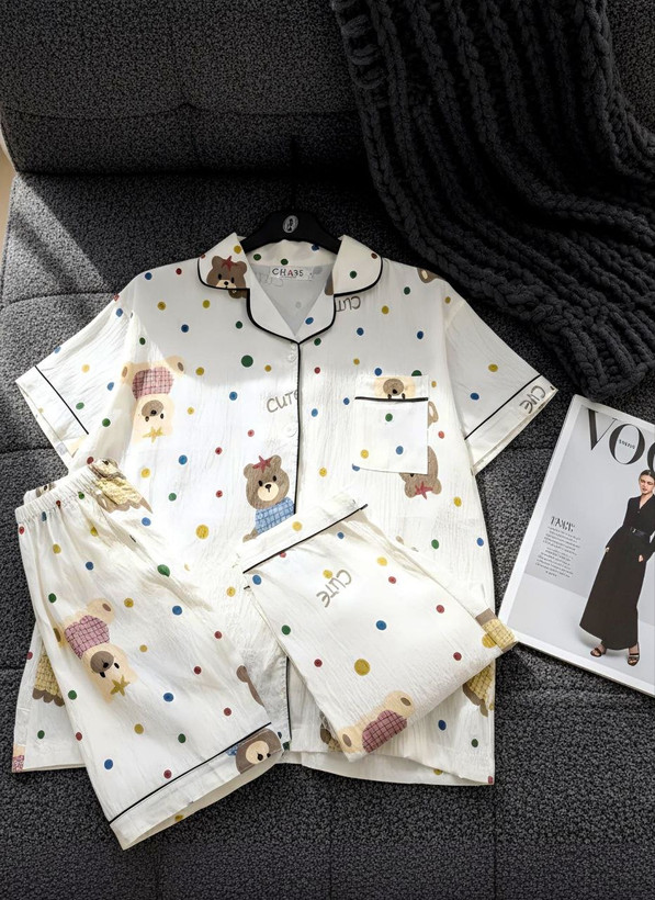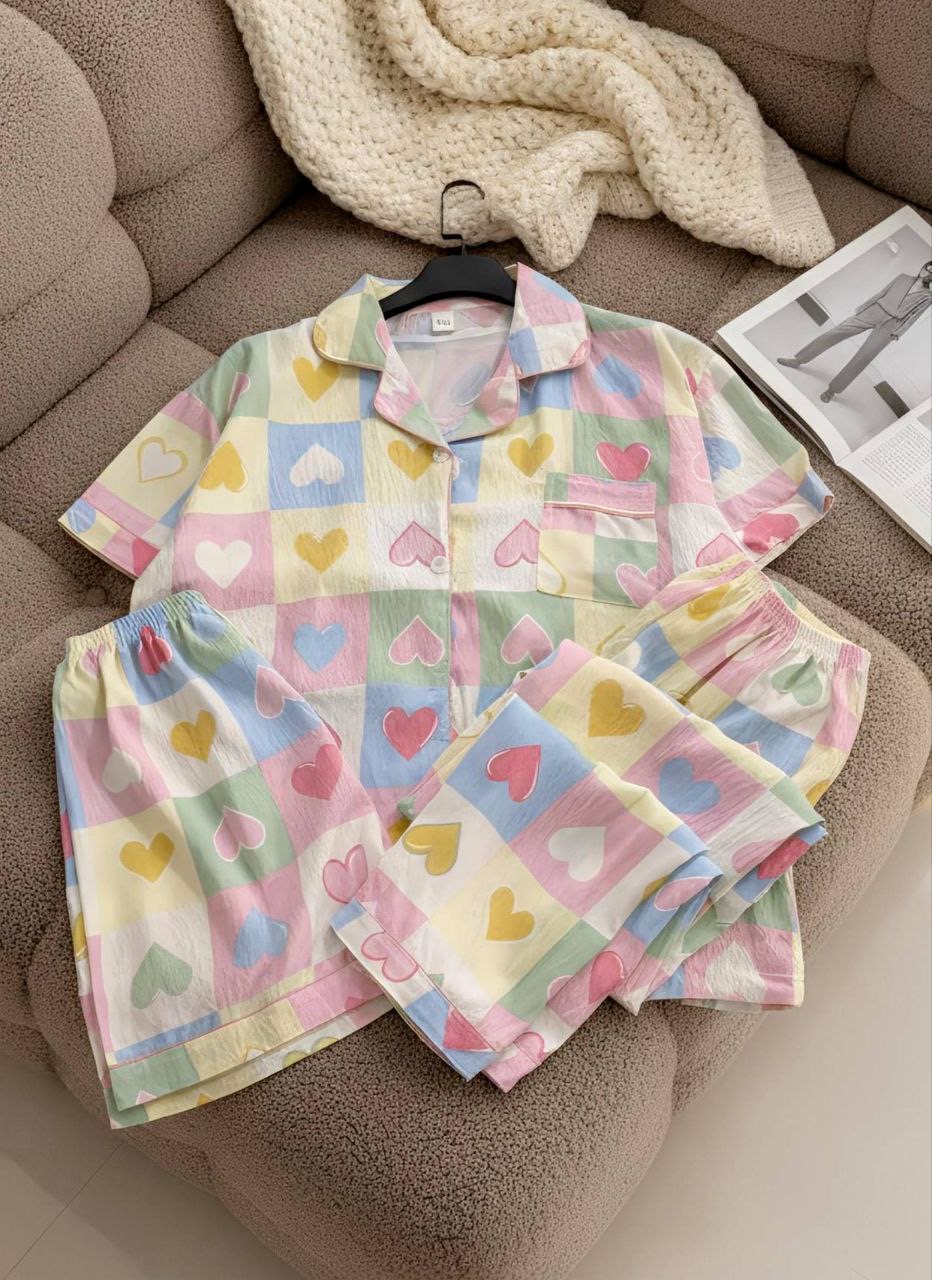 ست راحتی سه تیکه نخ موسلین زنانه «پیراهن ، شلوار ، شلوارک »