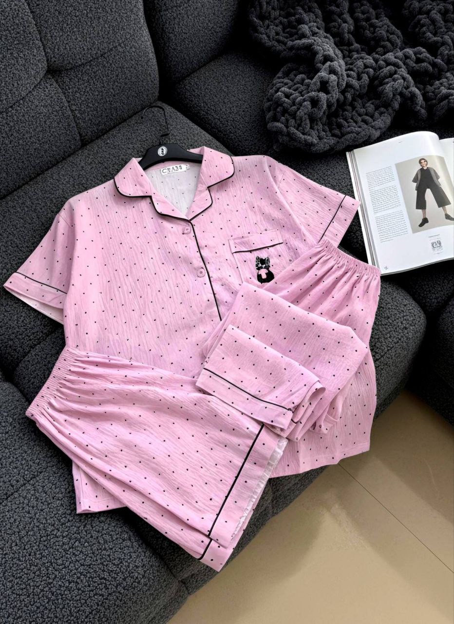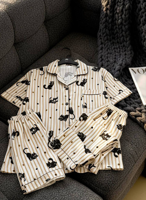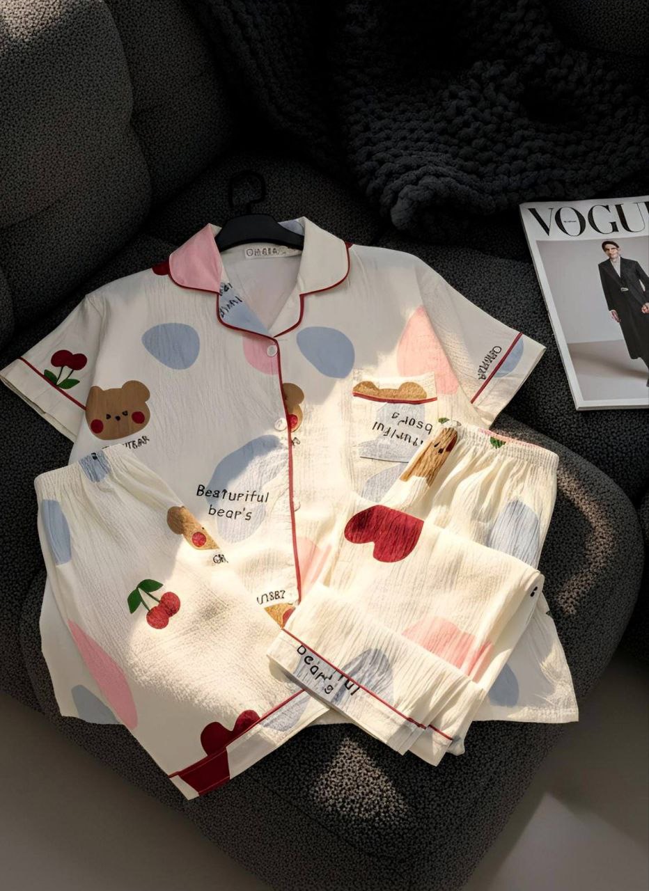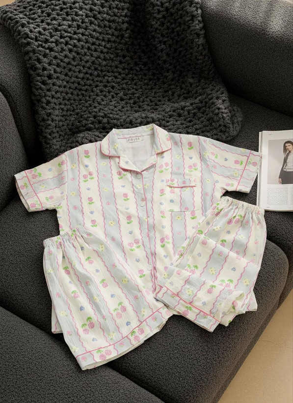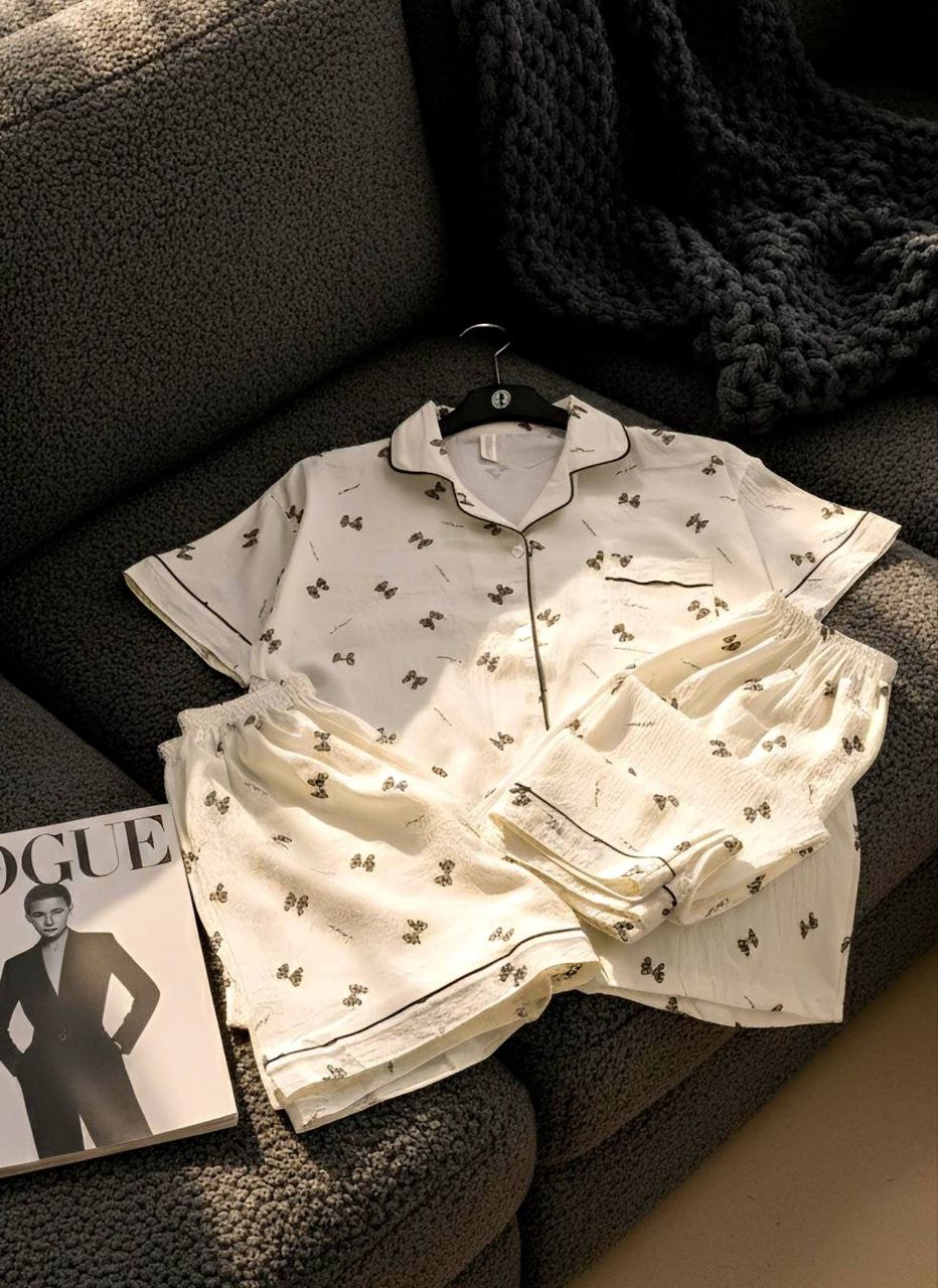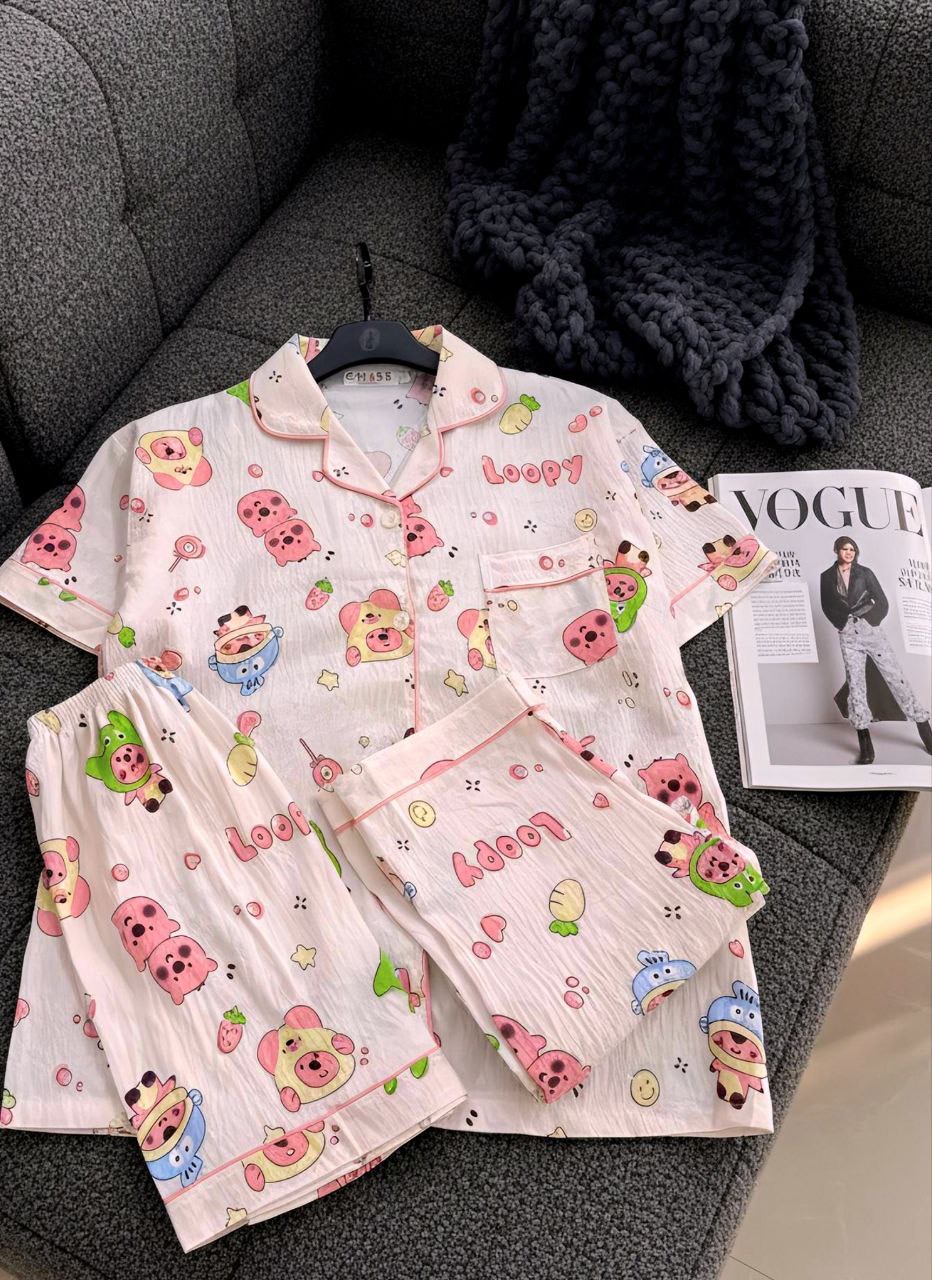 ست راحتی سه تیکه نخ موسلین زنانه «پیراهن ، شلوار ، شلوارک »