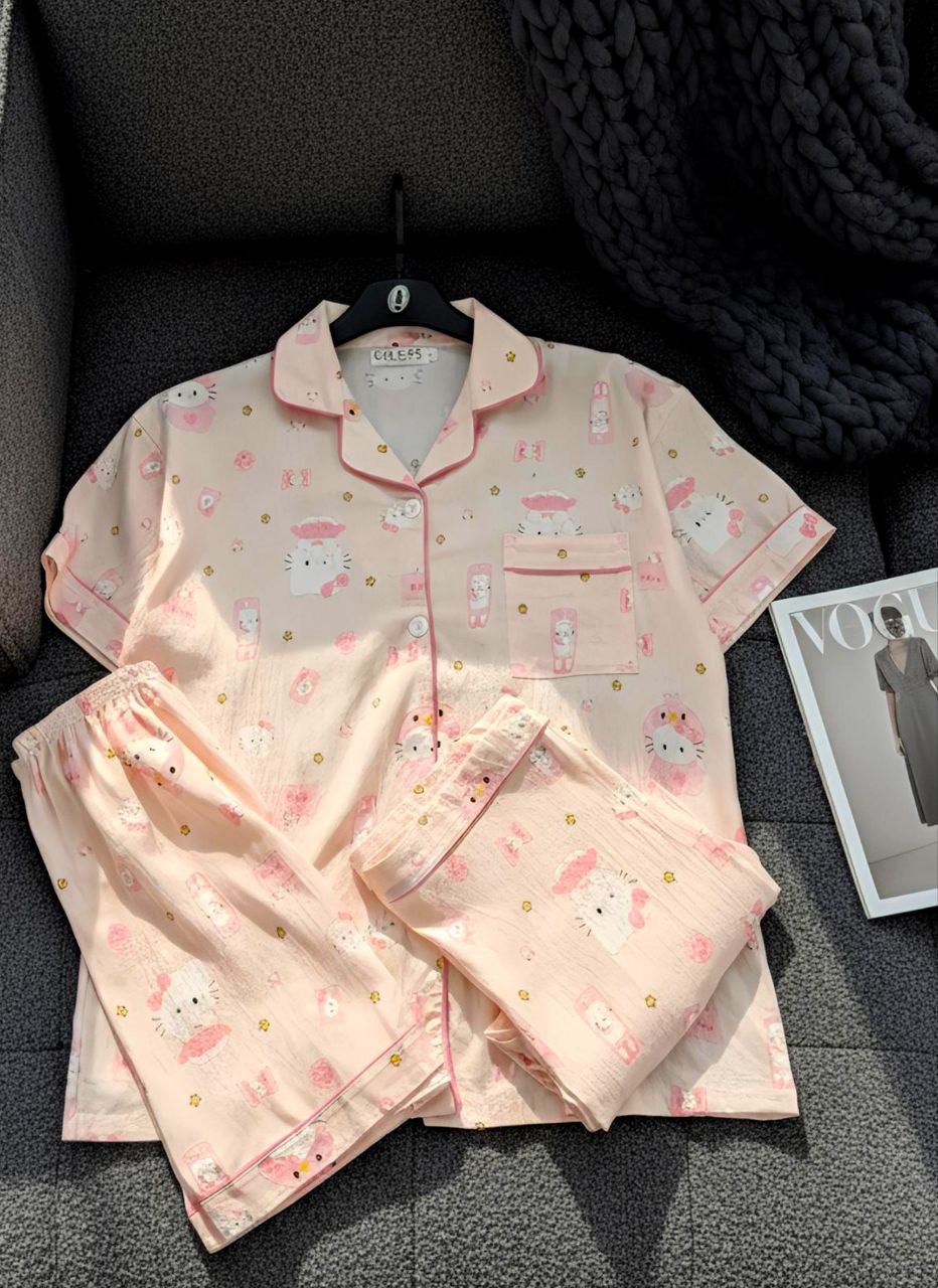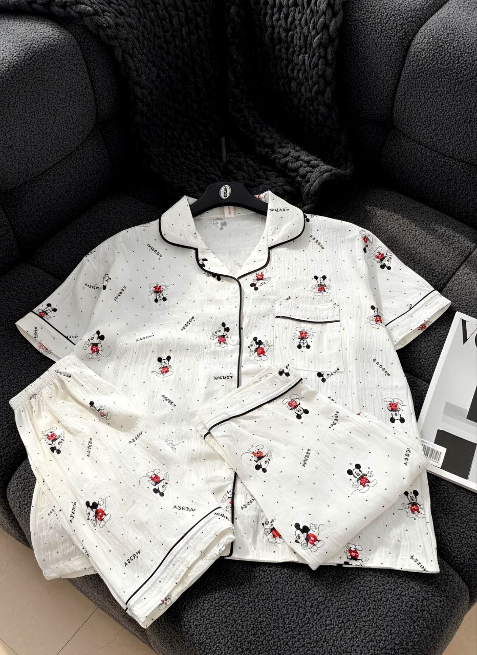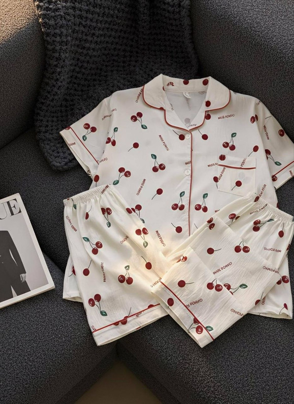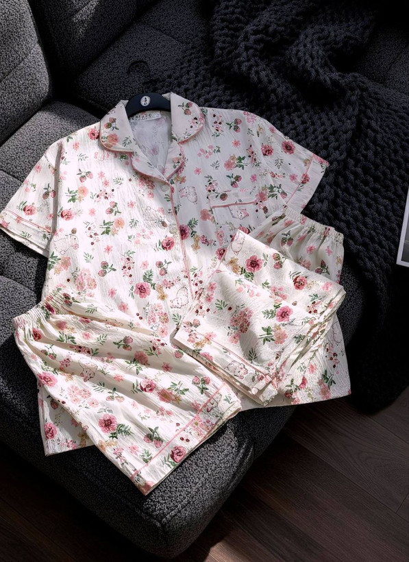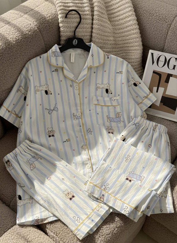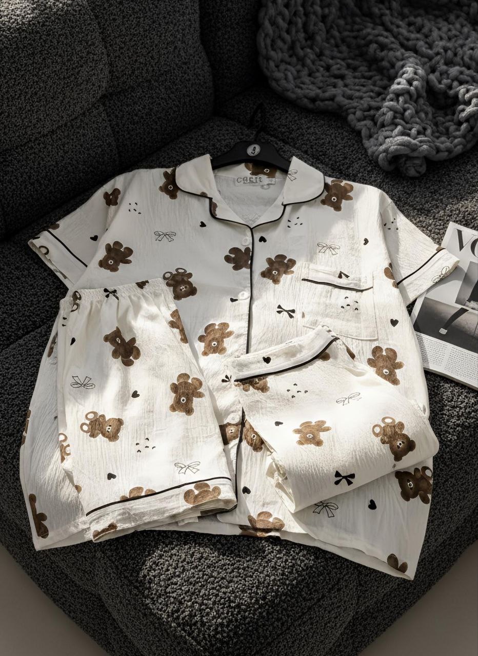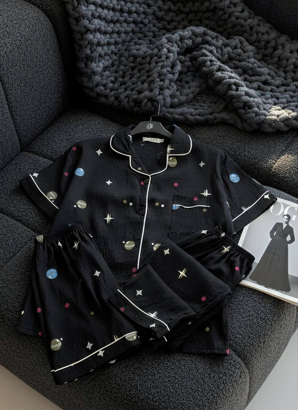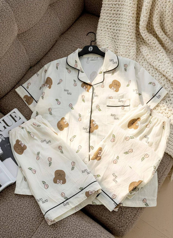 ست راحتی سه تیکه نخ موسلین زنانه «پیراهن ، شلوار ، شلوارک »